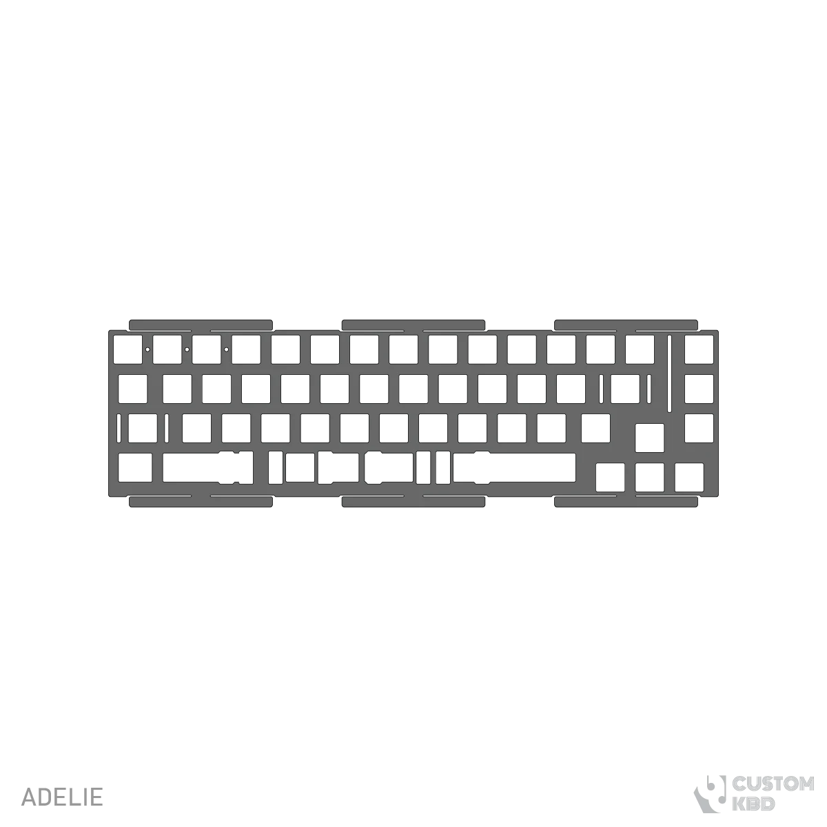 Custom made plates laser cut from Polyoxymethylene (POM). POM is a high strength, yet flexible plastic – It is a great choice of material for a keyboard plate as it provides a less firm typing experience and modified acoustics.Â