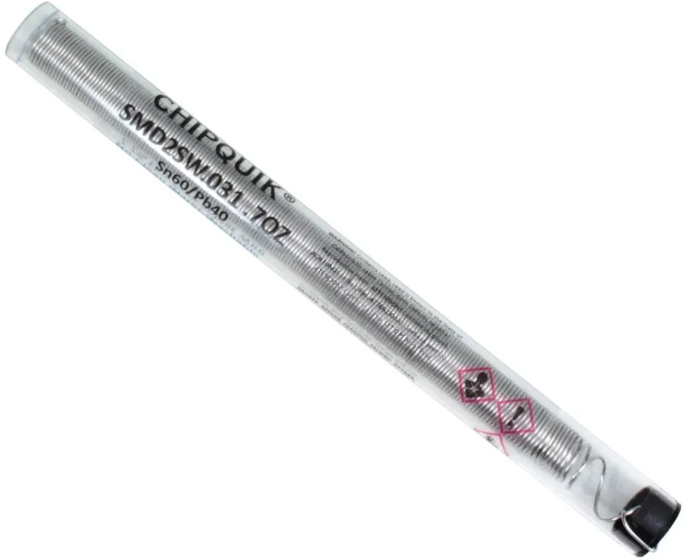 Small tube of Chipquick solder – perfect for keyboard applications. The 0.8 mm wire is a good size for general applications and the Tin/Lead mix of 60/40 means the solder is easy to flow.