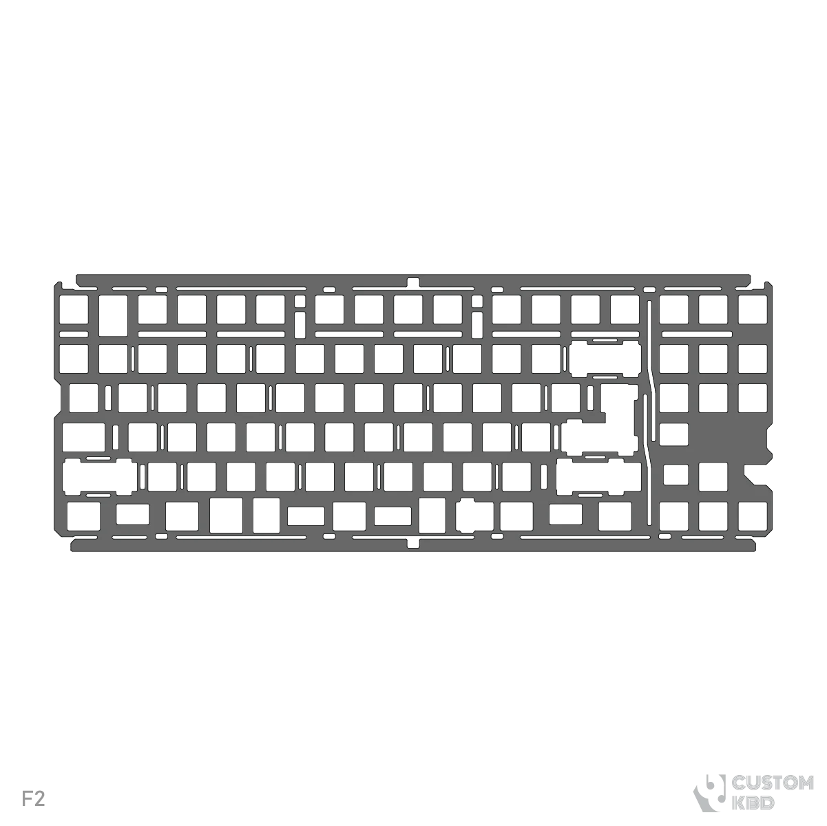 Custom made plates laser cut from Polyoxymethylene (POM). POM is a high strength, yet flexible plastic – It is a great choice of material for a keyboard plate as it provides a less firm typing experience and modified acoustics.Â