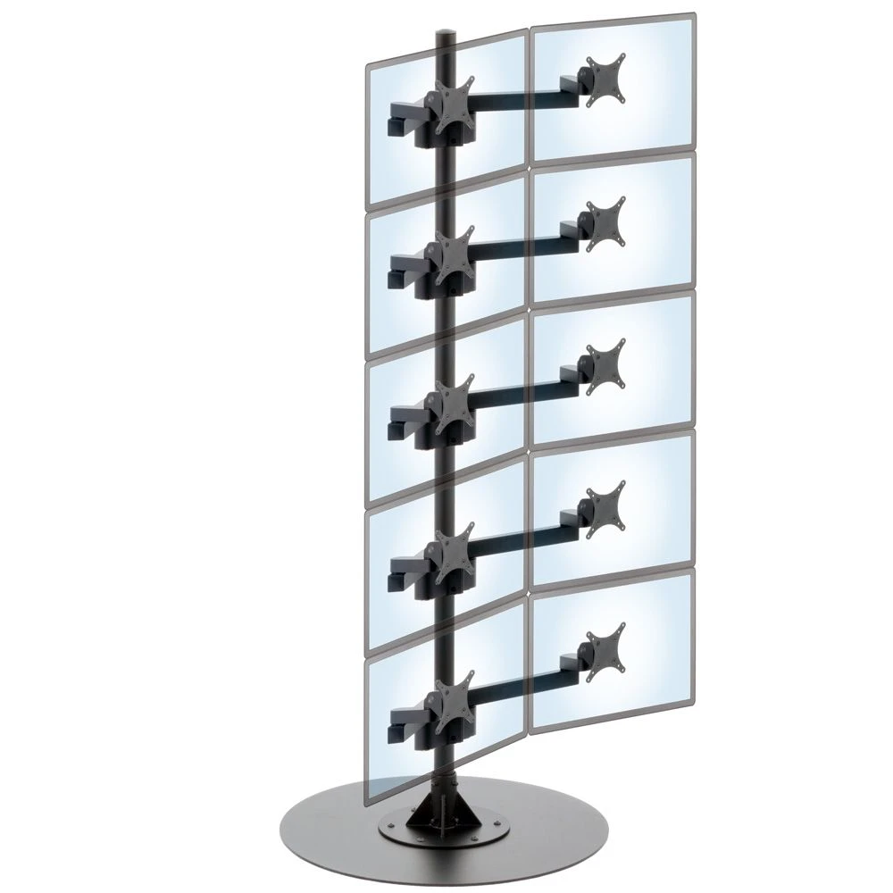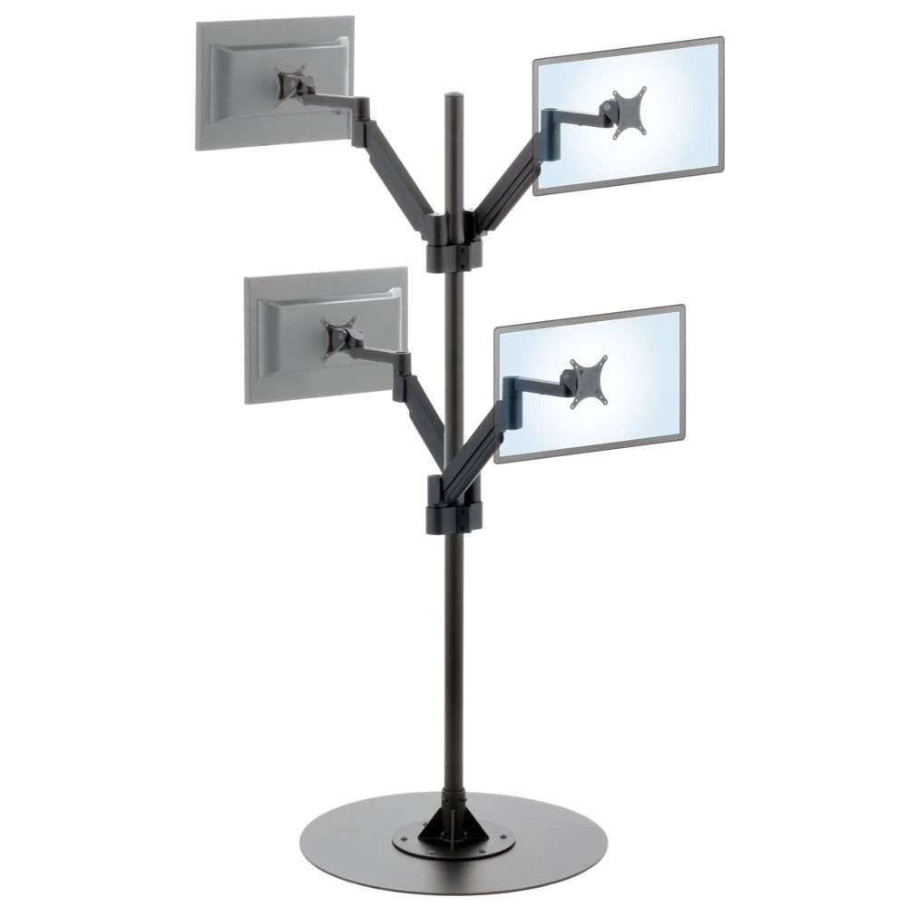 Save desk space by mounting multiple LCD monitors on this sturdy, heavy-duty pole mount stand. Multiple monitors can be stacked vertically and/or front to back. The PM192 Center Mount Floor Stand easily suspends 12 monitors at a time in a symmetrical balanced configuration for a freestanding informational flat screen display kiosk, medical work station or any place you need quick access to stacked monitors. The stand is especially useful for presentation display screens in business settings, retail, public access, hospitals or specialty work, and is excellent as portable and freestanding multi-user computer kiosks and work stations. In fact, the system can be configured to handle as many as four computer users positioned around the unit. When space is limited and the need for intermittent computer access by numerous users is required, this system can be the answer. Useful as a point of sale solution and as a basis for handling multiple components in trade show environments, it is also ideal for users who need multiple adjustable monitors but do not wish to attach them to a desk.