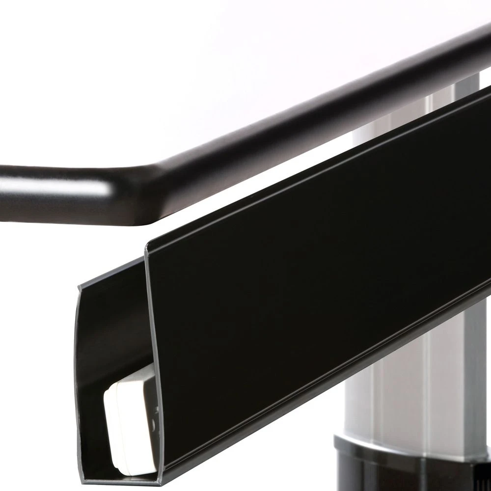 Designed to hold a wide variety of components such as power strips and small routers, the C Channel is robust enough to hold up to 3 pounds of payload per linear foot when properly attached to the above work surface. This roomy wire manager has interior dimensions of 3″ x 3.85″ and may be oriented in several ways to best adapt to the requirements of individual installations. This channel length is easily altered in the field during installation with a fine-toothed saw.