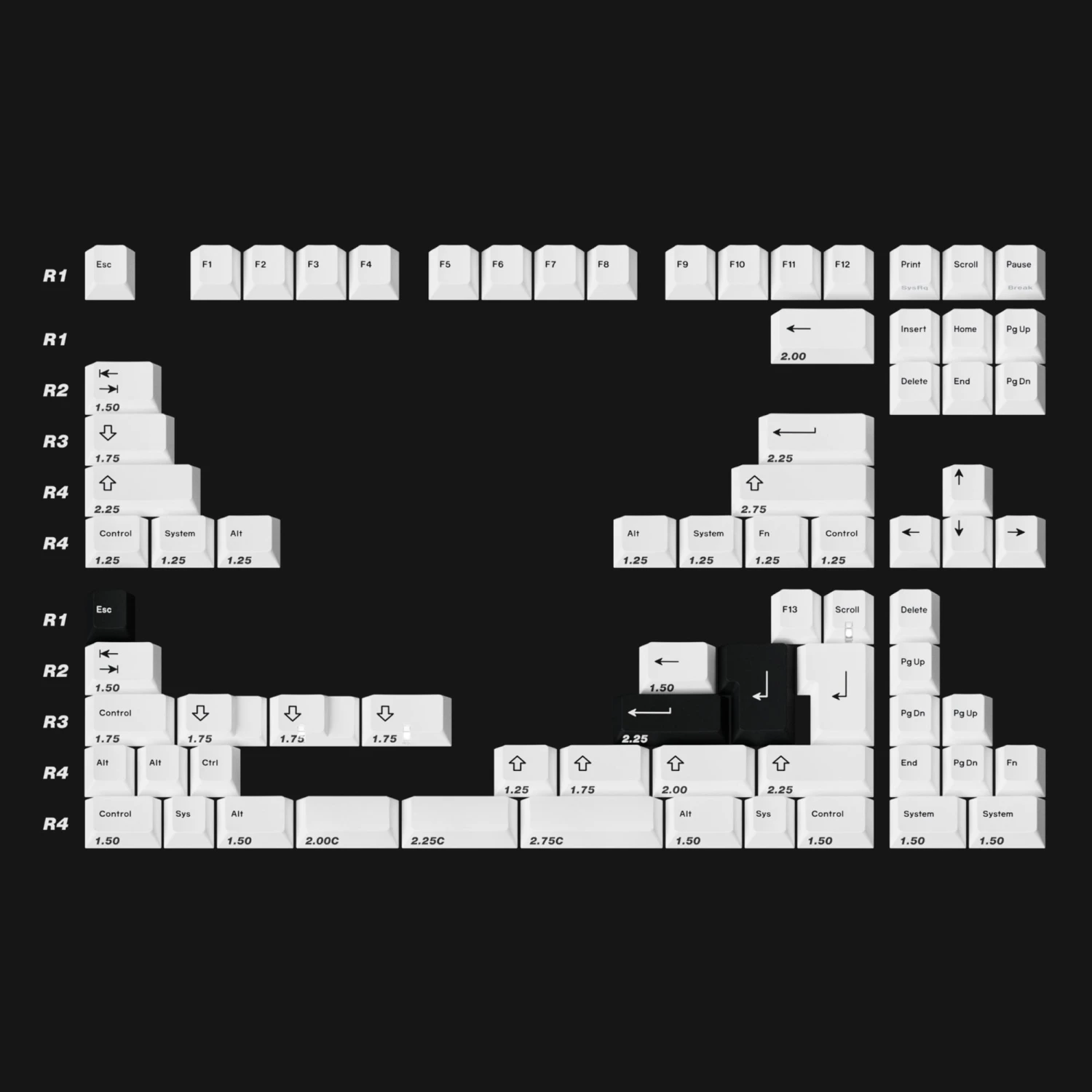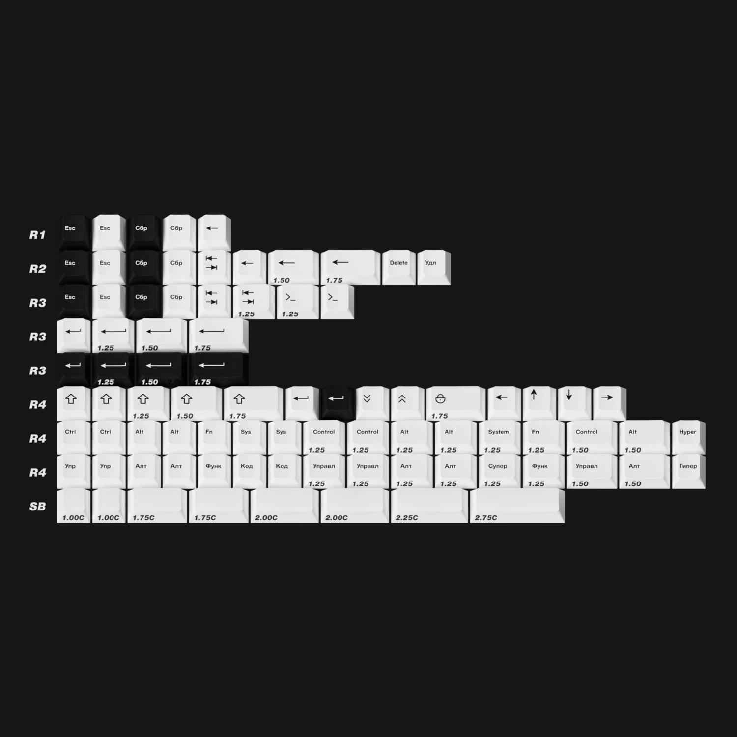 Inspiration: I wanted a BoW Cherry-like PBT keyset that had Cyrillic only alphas and Russian modifiers. Not much more to it than that. Also please note, while the kitting and design for this set is mostly complete, I will not focus on this set until I am comfortable with where ePBT 6085 is at.
