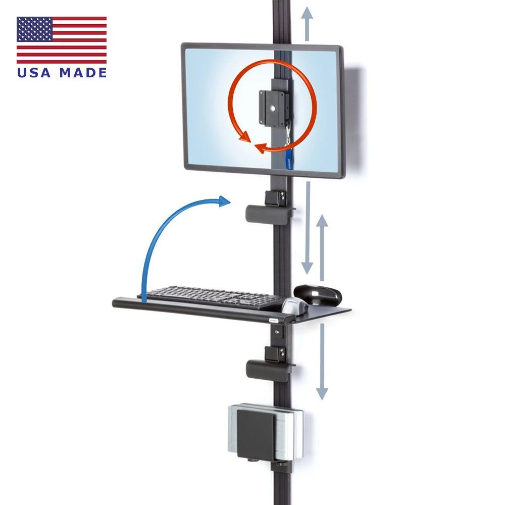 - Track lengths up to 77″ provide massive vertical range for sitting or standing workers