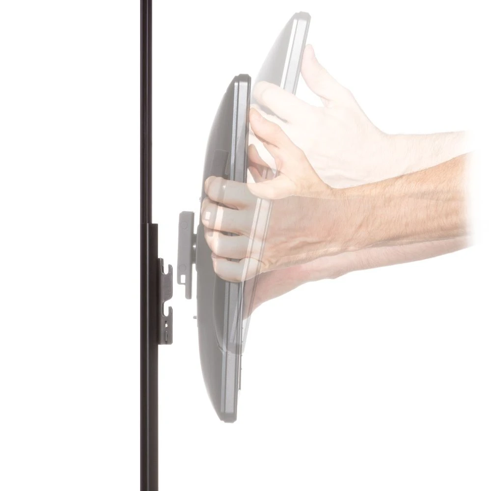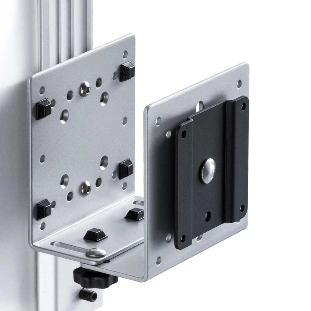 The LeverLift Access monitor and keyboard wall mount features a flush monitor mount, capable of supporting devices up to 13 pounds. The VESA compatible rotation plate can be rotated back and forth from landscape to portrait. The tension is adjustable to set rotation ease to the desired level. The back of the monitor rests less than 2 inches from the wall.