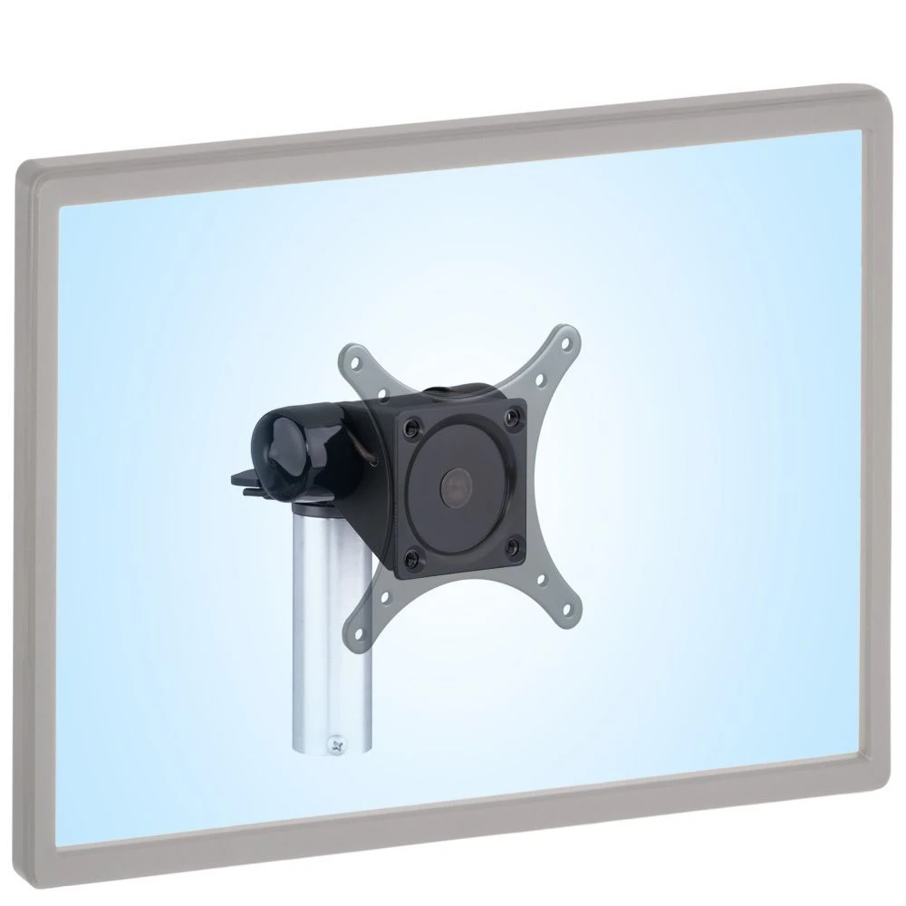 The Low Profile Articulating Mount (TILTER118) is a VESA compatible mounting device, which provides monitors, tablets and similar equipment with tilt, swivel and rotation capabilities. The TILTER118 tilts 90° upwards and 45° downwards and swivels up to 360°. These ranges are only inhibited by the mounted device meeting interference from mounting surfaces or other objects. Monitors can also easily be rotated from landscape to portrait.