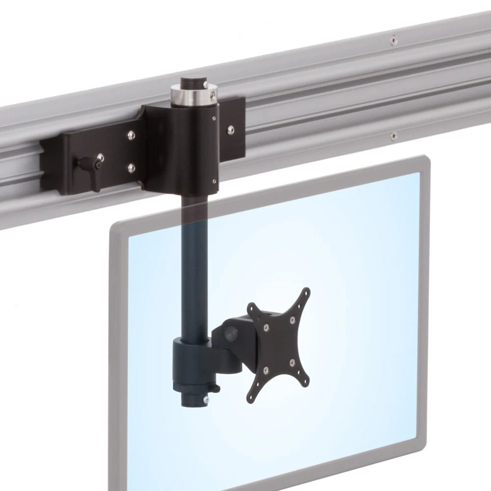 With the Roller Track Sliding Horizontal Mount System, the monitor can be positioned above or below the track on a MKIT-M or MKIT-N.Â