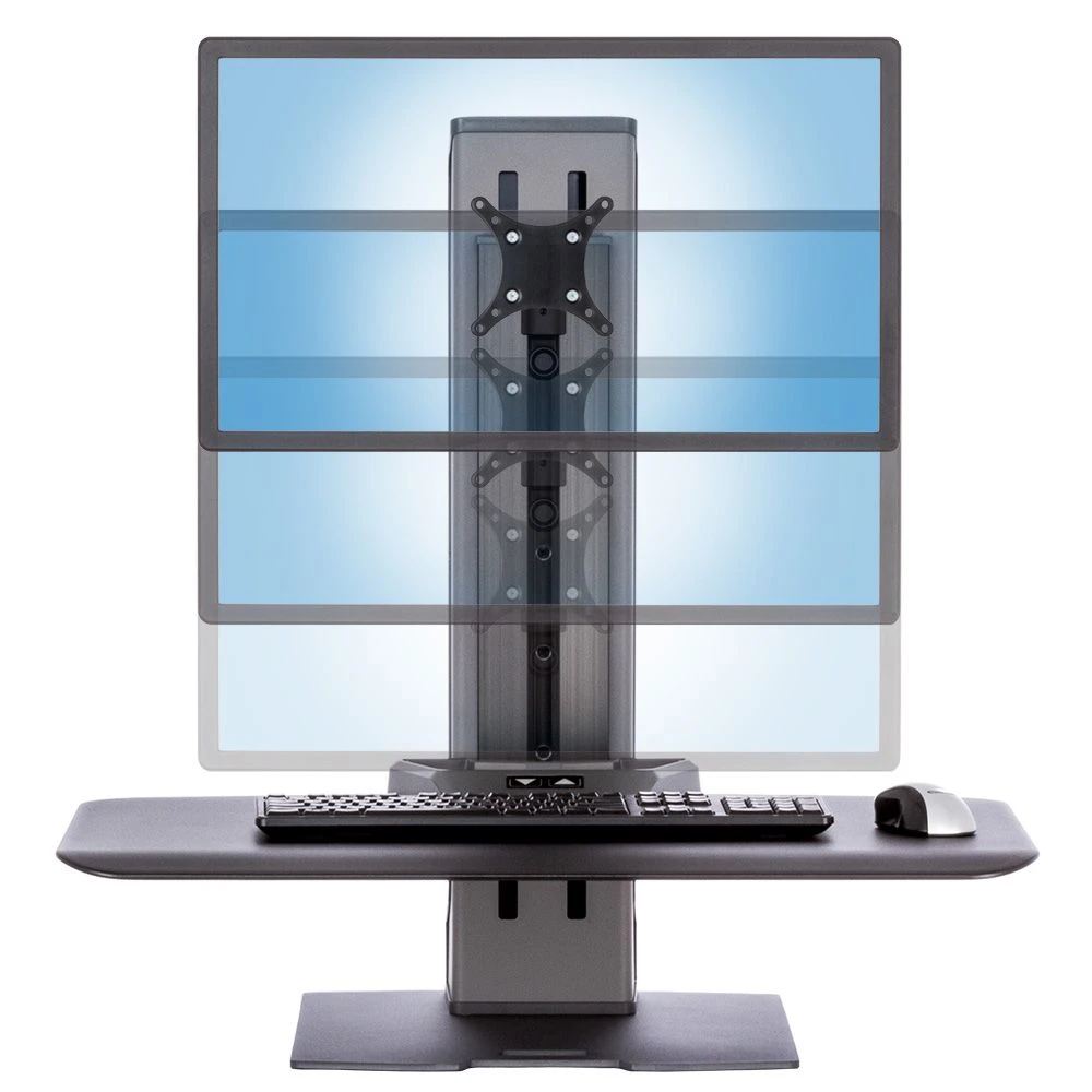 The Winston-E sit-stand workstation is also available in Winston-E Dual and Winston-E Triple monitor setups. Ergomart’s Dorian Single, Dorian Dual, Dorian Triple and Dorian Quad monitor workstations offer similar sit-stand capabilities with user-powered height adjustment at a reduced cost.