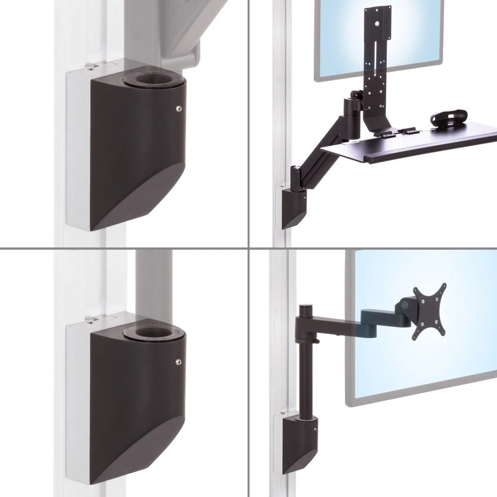 The Heavy-Duty Dovetail Mount Kit S provides a strong mount for medical applications and healthcare equipment with dovetail track openings from 1 to 1.1 inches. It is designed to evenly spread stress throughout the dovetail mount length of 5.32″. Most Ergomart mounting arms are appropriate with this product. This mount is compatible with many anesthesia carts, incubators, equipment booms and dovetail wall track configurations.