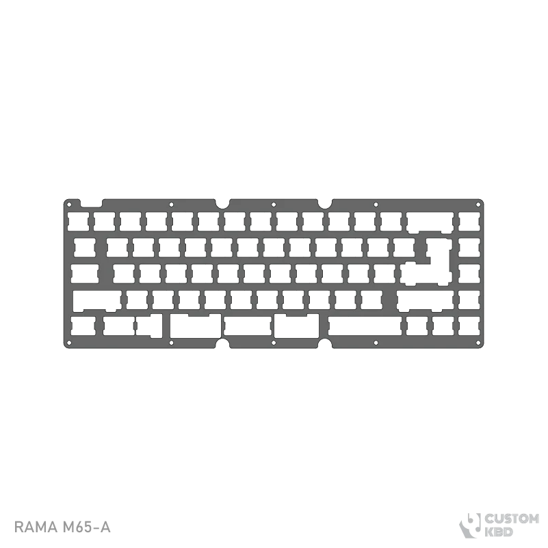 Custom made plates laser cut from Polyoxymethylene (POM). POM is a high strength, yet flexible plastic – It is a great choice of material for a keyboard plate as it provides a less firm typing experience and modified acoustics.Â