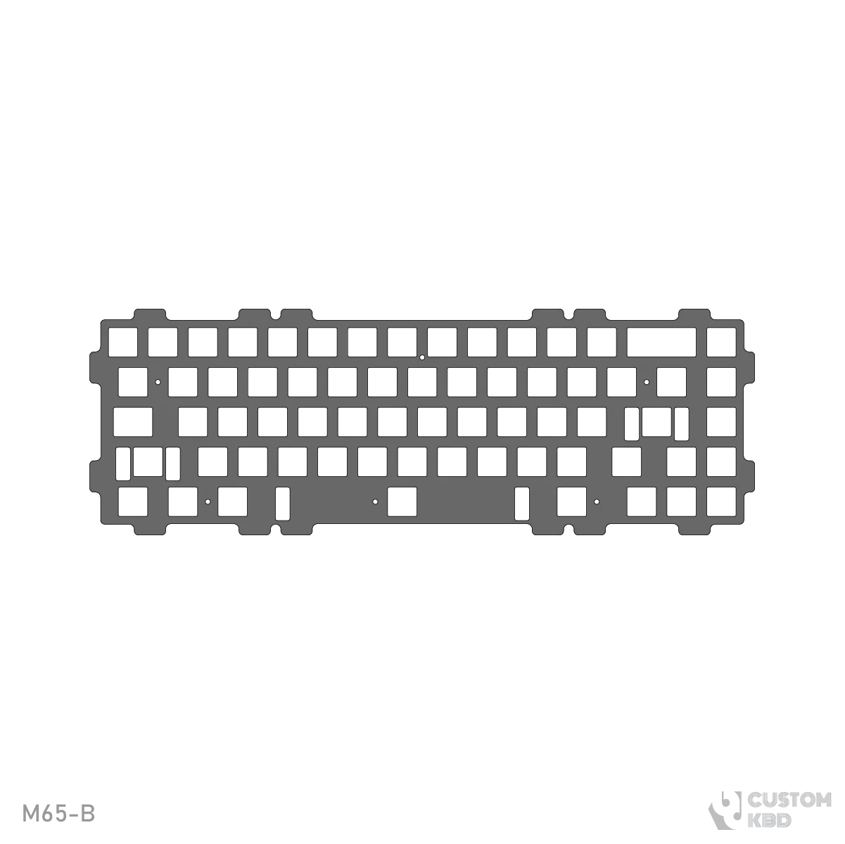 Custom made plates laser cut from Polyoxymethylene (POM). POM is a high strength, yet flexible plastic – It is a great choice of material for a keyboard plate as it provides a less firm typing experience and modified acoustics.