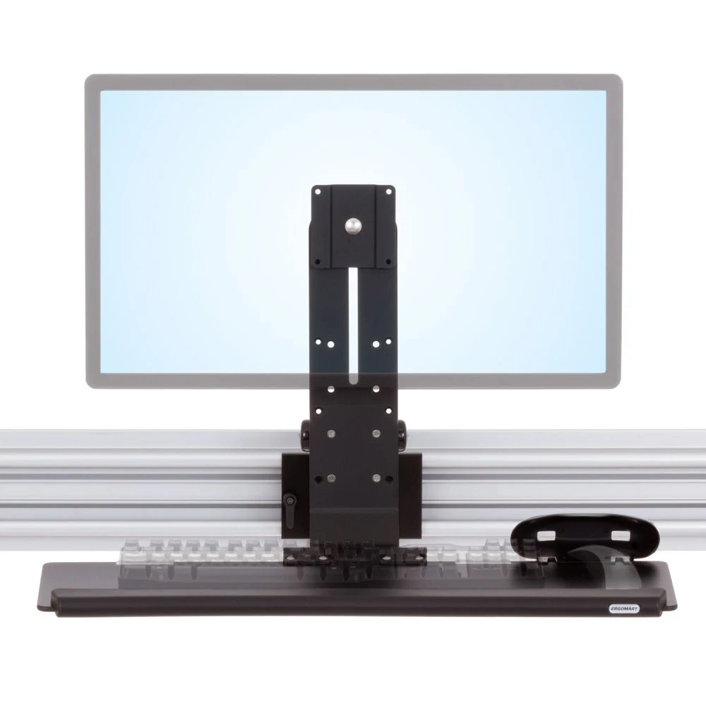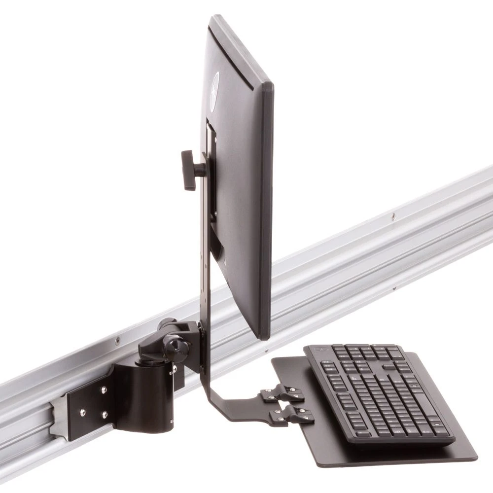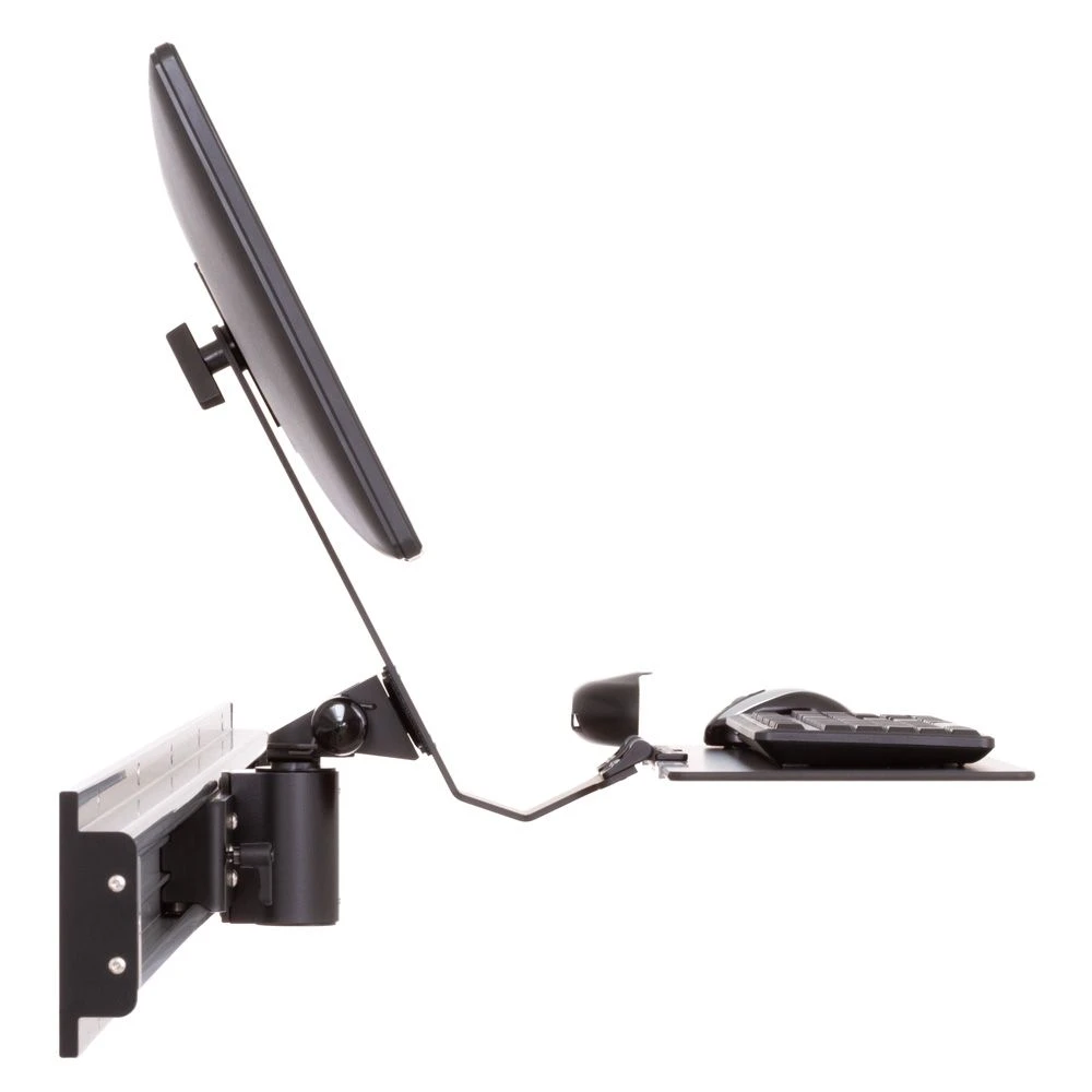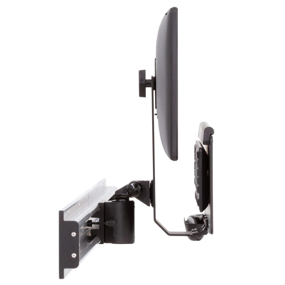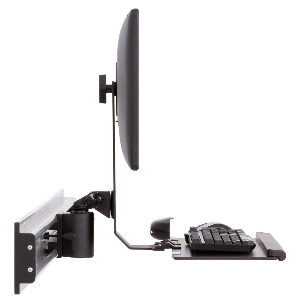 The Ergomart Sliding Monitor & Keyboard Mount on a Wall Track features a compact, adjustable monitor and keyboard tray mount that is affixed to a heavy-duty rail, ideal for retail, office, medical, technical, and light industrial environments.