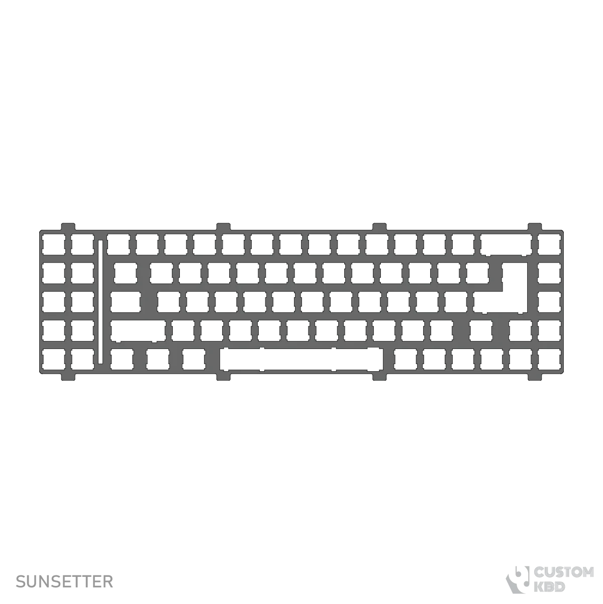 Custom made plates laser cut from Polyoxymethylene (POM). POM is a high strength, yet flexible plastic – It is a great choice of material for a keyboard plate as it provides a less firm typing experience and modified acoustics.Â