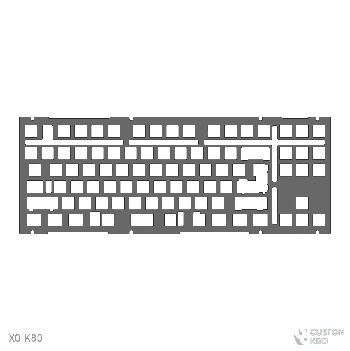 Custom made plates laser cut from Polyoxymethylene (POM). POM is a high strength, yet flexible plastic – It is a great choice of material for a keyboard plate as it provides a less firm typing experience and modified acoustics.Â